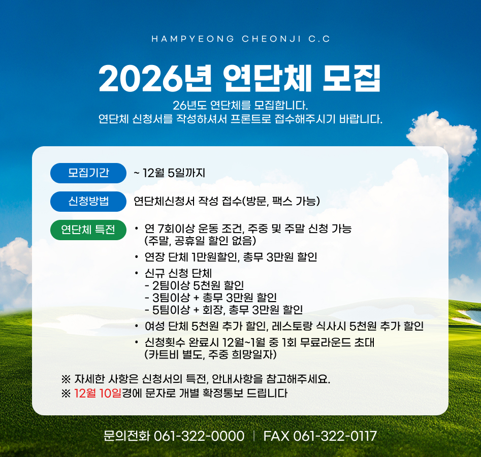 함평천지CC 26년 연단체 모집