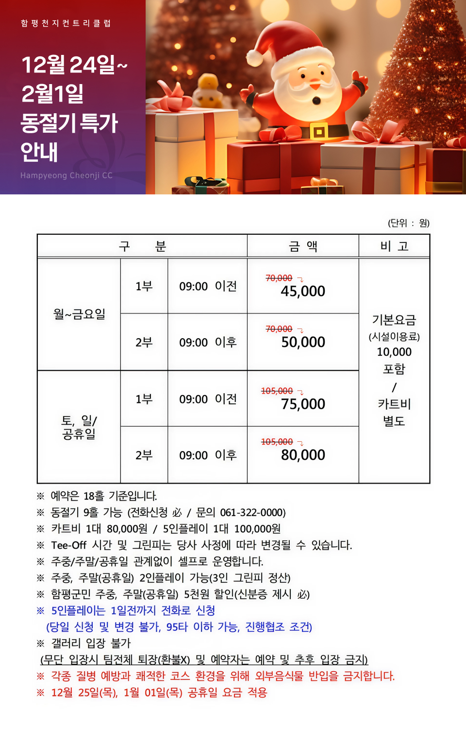 12월 24일~ 2월1일 동절기 특가 안내