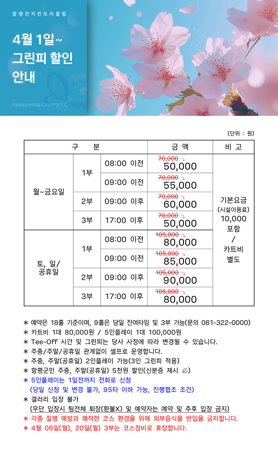 4월 1일~ 그린피 할인 안내